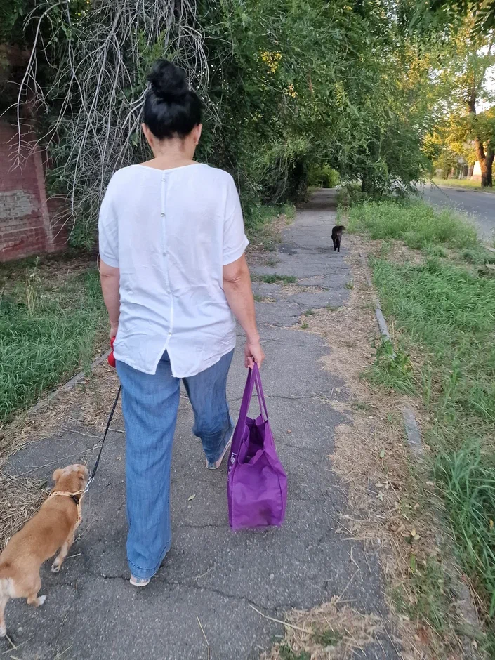 Предыдущая статья - ЗДЕСЬ. Пишу урывками, так как дел накопилось очень много, но хотя бы так - по мере выпадающих возможностей постараюсь рассказывать о поездке. На протяжении нашего маршрута по ДНР и по ЛНР жара стояла жуткая: +37 стабильно. И каким же счастьем было проснуться в пять часов, попить крепкий кофе и пойти с Анжелой прогуляться с Дусей и Машей по утренней приятной свежести.