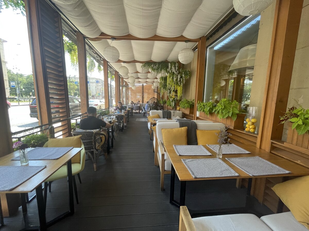 В Петербурге нет трудностей с питанием, есть только проблема выбора - мест столько, что, наверное, все и за год не обойдешь. Я по мере сил старалась посещать самое интересное, но не всегда приезжий может найти хорошие места, тут без помощи местных не обойтись. Хорошо, что во время нашего автопробега со Сбером по местам Ольденбургских всю подготовку, в том числе с выбором точек питания,взяли на себя организаторы. И они серьезно подошли к этому вопросу по всему пути следования мы ели только в самых необычных и ярких местах. Вот перед стартом из Петербурга мы отправились в прекрасный итальянский ресторан Bona Capona с настоящим шефом из Тосканы Алессандро Лукинелли. Ресторанчик уютный, семейный, с приятной террасой и уединенным пространством на антресолях, где мы и разместились. Меню ланча простое, но сытное и на любой вкус. Есть сезонные блюда, рыбные, мясные, вегетарианские. В основном меню много всего: и антипасти, и пиццы, и всякие виды паст. Запить все можно просекко или легким дома