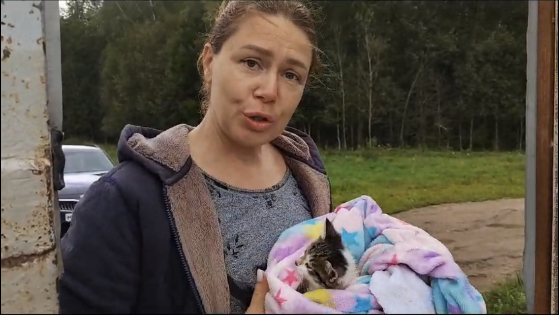 Остановилась машина, женщина вынесла котёнка, поставила рядом мисочку с едой и уехала... А другая женщина подобрала котёнка, но привезла его в приют, т.к. живёт в квартире и своих животных уже трое.. Так трогательно умоляла забрать его в приют, что отказать было невозможно... Когда согласились - оставила денег.