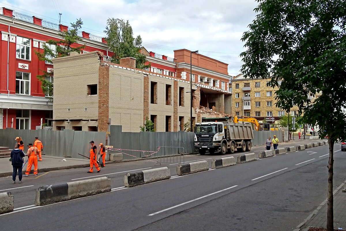 Работы по разбору бетонно-кирпичной коробки на главном проспекте города в самом разгаре. По предварительным оценкам, потребуется не менее полумесяца, чтобы полностью избавиться от остатков строения на тротуаре. Ограничения движения тем временем отменили – демонтаж стараются проводить аккуратно, частично вручную, чтобы не повредить соседнее здание. А главное, чтобы никакой кирпич не прилетел на голову горожанам.