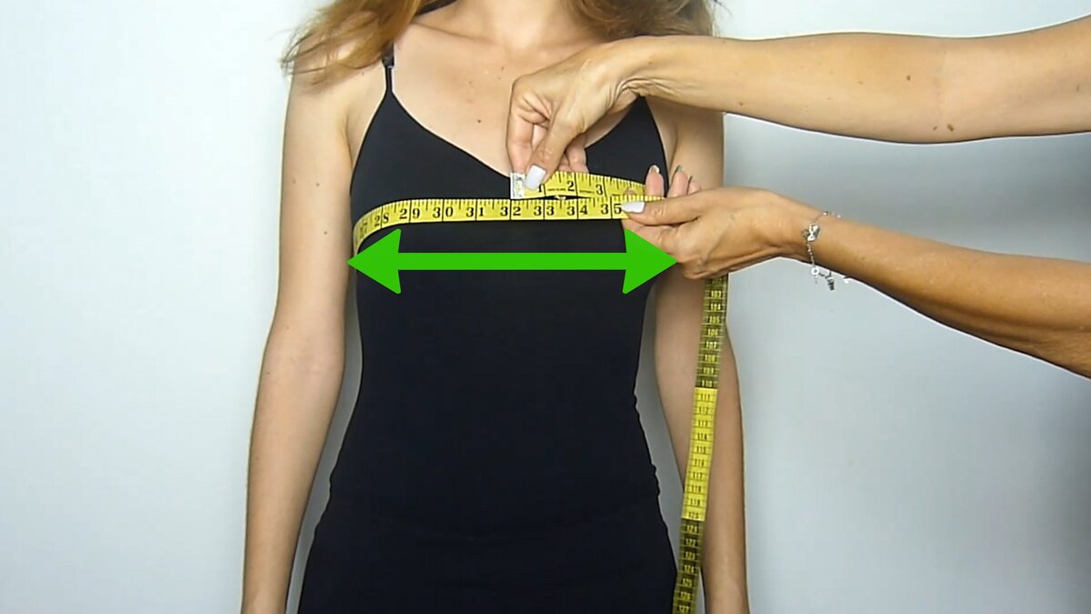 1. Измерьте обхват груди. Для этого оберните мерную ленту вокруг самой широкой части груди, подмышечными впадинами и лопатками. Убедитесь, что лента не слишком туго облегает тело, но и не провисает.