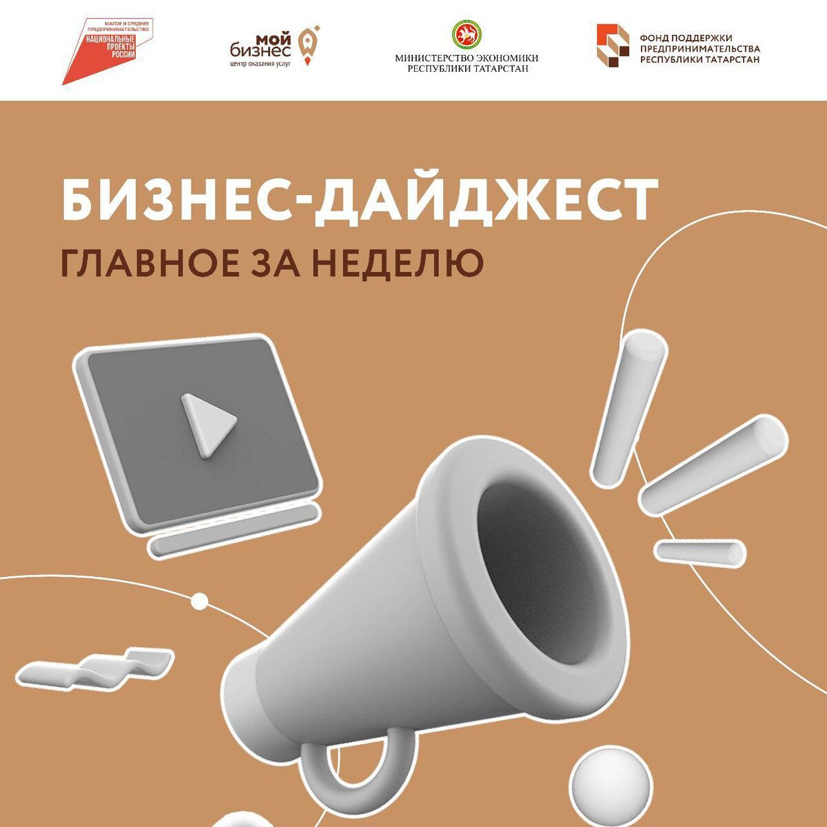 Вся актуальная информация прошедшей недели для предпринимателей и самозанятых Татарстана в одном месте 👇🏼 Переходите по ссылкам и делитесь дайджестом с коллегами! 💼Для МСП: ✔️ Предприниматели Татарстана получат грантовую поддержку до 500 тысяч рублей. Министерство экономики Республики Татарстан объявило о проведении конкурсного отбора на предоставление грантов в форме субсидий субъектам МСП, вошедшим в реестр социальных предпринимателей, а также молодым предпринимателям до 25 лет включительно. Здесь подробности↩️ Прямая трансляция с инструкцией, как подать заявку - здесь↩️ ✔️ Стань оператором открытия новых точек проекта «Фермерский островок» в Казани. Это отдельная торговая площадка формата «магазин в магазине», располагающаяся в федеральных торговых сетях, в магазинах у дома с высоким трафиком и средним чеком, в торговых центрах и других локациях. Здесь подробнее↩️ ✔️«Маркировка рекламы: как отчитываться по закону». Что такое маркировка рекламы и какую рекламу нужно маркировать?