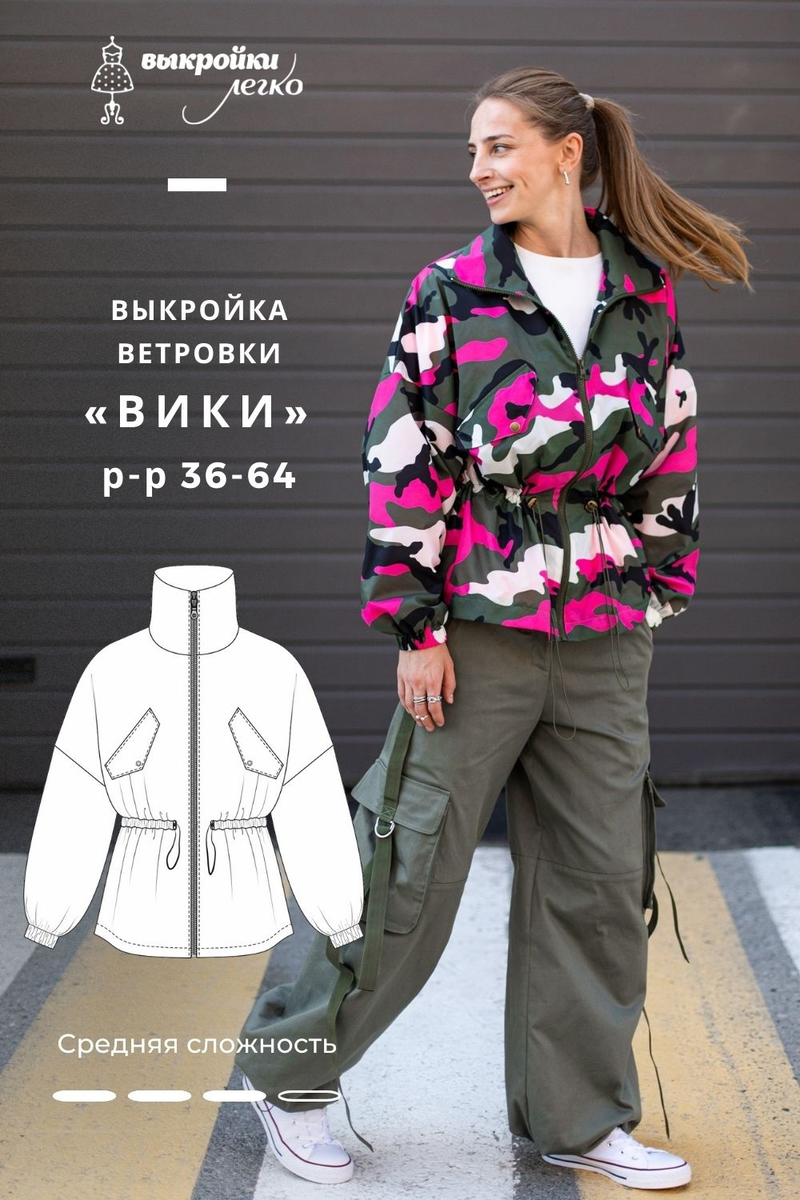 Размеры выкройки подходят как для девочек-подростков, так и для женщин: с 36 по 64, в 5-6 вариантах ростов на каждый размер. Выкройка ветровки из дерзкой коллекции «Вики» по ссылке: https://patterneasy.com/ready-patterns/viki-windbreacker