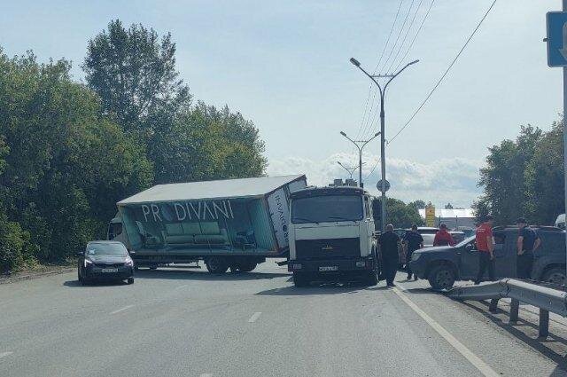 В Новосибирске на Бердском шоссе парализовало движение из-за ДТП с фурами