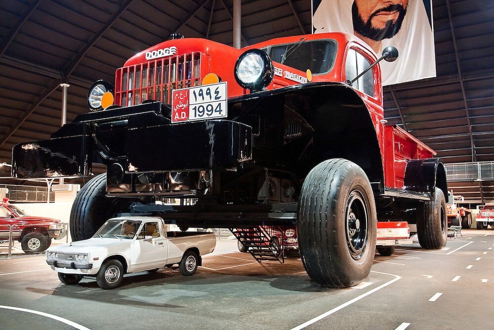 Миллиардеры любят тратить деньги на свои хобби и увлечения. А когда вы являетесь членом королевской семьи Эмиратов, у вас может быть практически любое хобби, какое пожелаете. Шейх Хамад бен Хамдан Аль Нахайян любит коллекционировать очень роскошные автомобили, и, похоже, у него также есть склонность к крупногабаритным транспортным средствам. Ему принадлежит мировой рекорд Гиннесса: он собрал самую большую коллекцию автомобилей 4×4 — 718 машин, часть из которых он хранит в своей собственной пирамиде за пределами Абу-Даби. Мы поговорим о самом большом и экстремальном грузовике, который когда-либо появлялся на Земле — точной копии классического пикапа Dodge Power Wagon 1950 года выпуска, но в восемь раз больше. Решение построить точную копию этого пикапа не случайно. Шейх выбрал Dodge Power Wagon 1950 года выпуска, потому что это был один из первых автомобилей, использовавшихся пионерами нефтяной промышленности в 1950-х годах, поэтому он считается синонимом нефтяного бума того десятилети