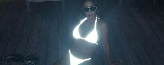 Модель опубликовала новый кадр в светоотражающем бикини.