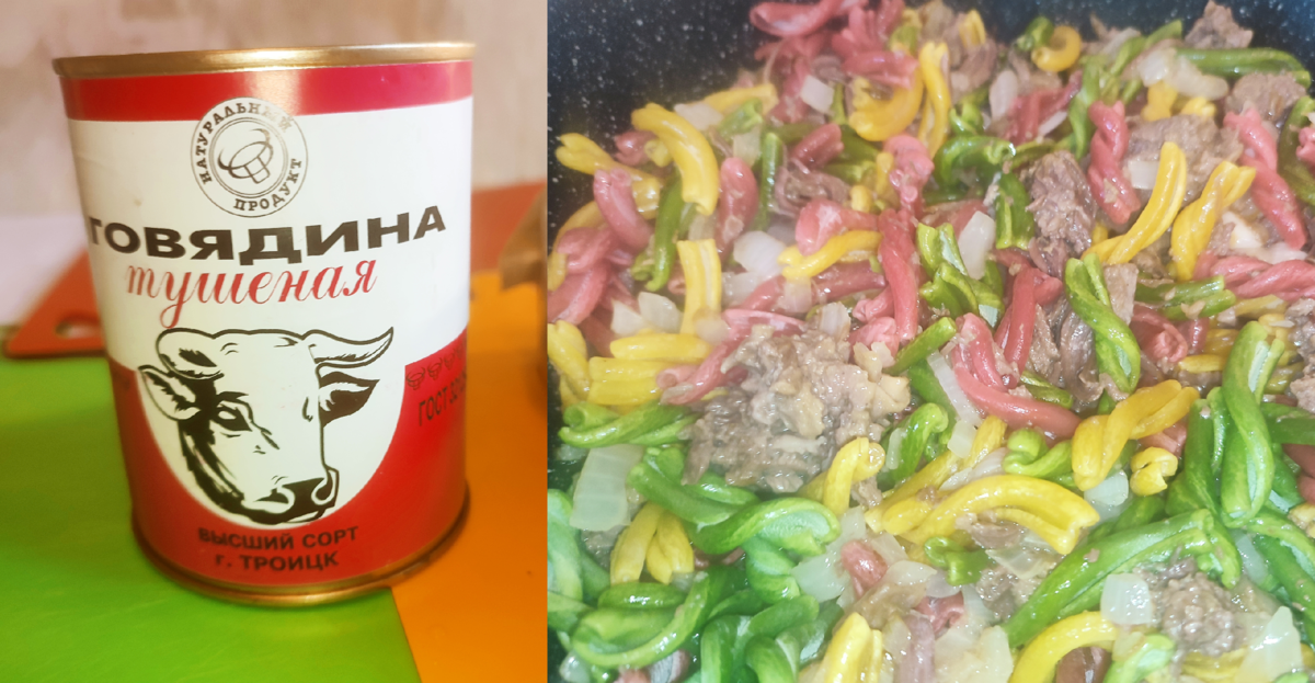 Меня удивили ДВА продукта из «СВЕТОФОРА», тушенка за 141 рубль и цветные макароны за 32 рубля, а вместе это МАКАРОНЫ ПО-СВЕТОФОРСКИ))