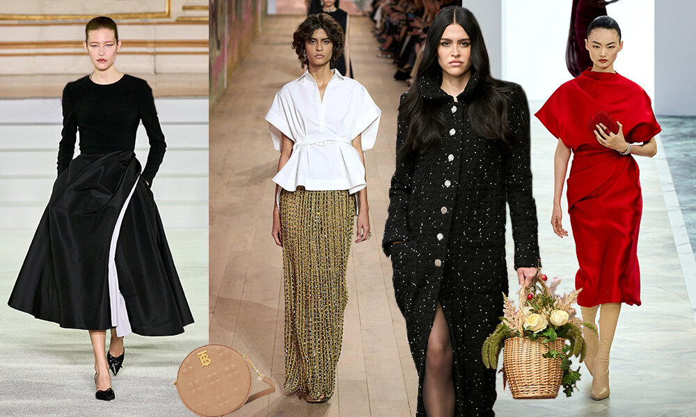Многие модельеры черпали вдохновение в эстетике эпохи нью лук. В тренде расклешенные и пышные юбки длинной за колено либо чуть ниже. Блузки, кофточки и рубашки с ними носятся в заправленном виде, чтобы создать эффектный силуэт «песочные часы».