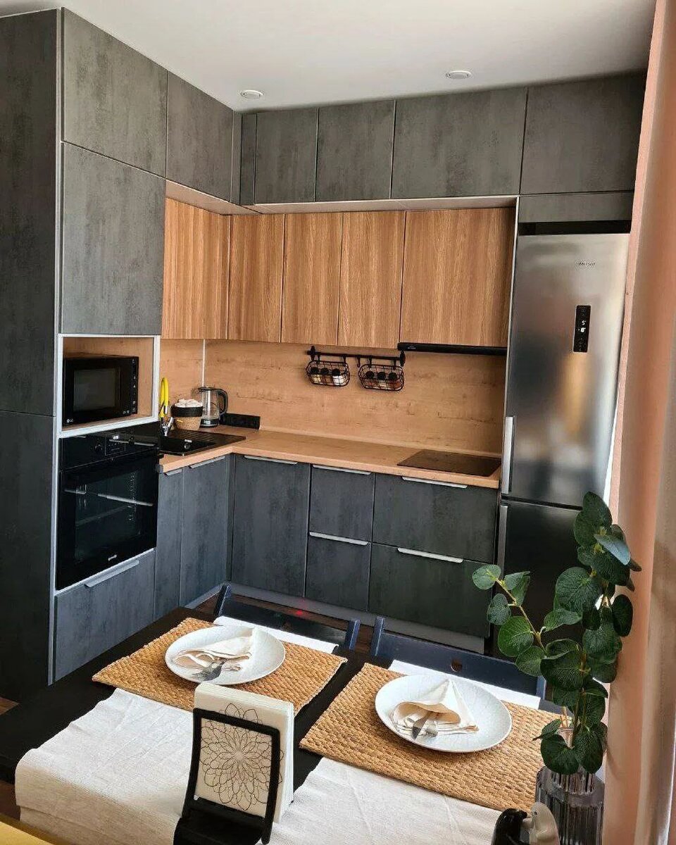 Очень перегружено и вразнобой -тут и рейки и под кирпич и масса разного дсп, и ламинат на стене , и рядом два телевизора зачем Втулили все что можно было что не продохнуть кажется. Варочная поверхность слишком близко к холодильнику.Нет возможности загрузить посудомойку,стоя у раковины.....😏 По поводу цветовых решений вообще не стоит спорить - кому что нравится! Меня вот например от «бежвенького»тошнит, но это всего лишь о том, что данный цвет не нравится именно мне. А что не так с кухней? Я бы только поменяла местами холодильник и шкаф с духовкой и МВП. Чтобы готовка - в одном месте, а хранение - в другом, ну и фэн-шуй конечно же: огонь-вода- то сё!😀 Бюджет потрачен с "избытком". Интерьер в 30 м2 (минусWC) перегружен мебелями +отделка+цветовая гамма. " Нет живого места". Про такие объекты говорят "дышать тесно".))) Больше похоже на скученное пронстранство для деморстрации мебели...А где и какой у нас туалет? Или я не заметила "ведро в шкафу"?))) Квартира сама маленькая, так
