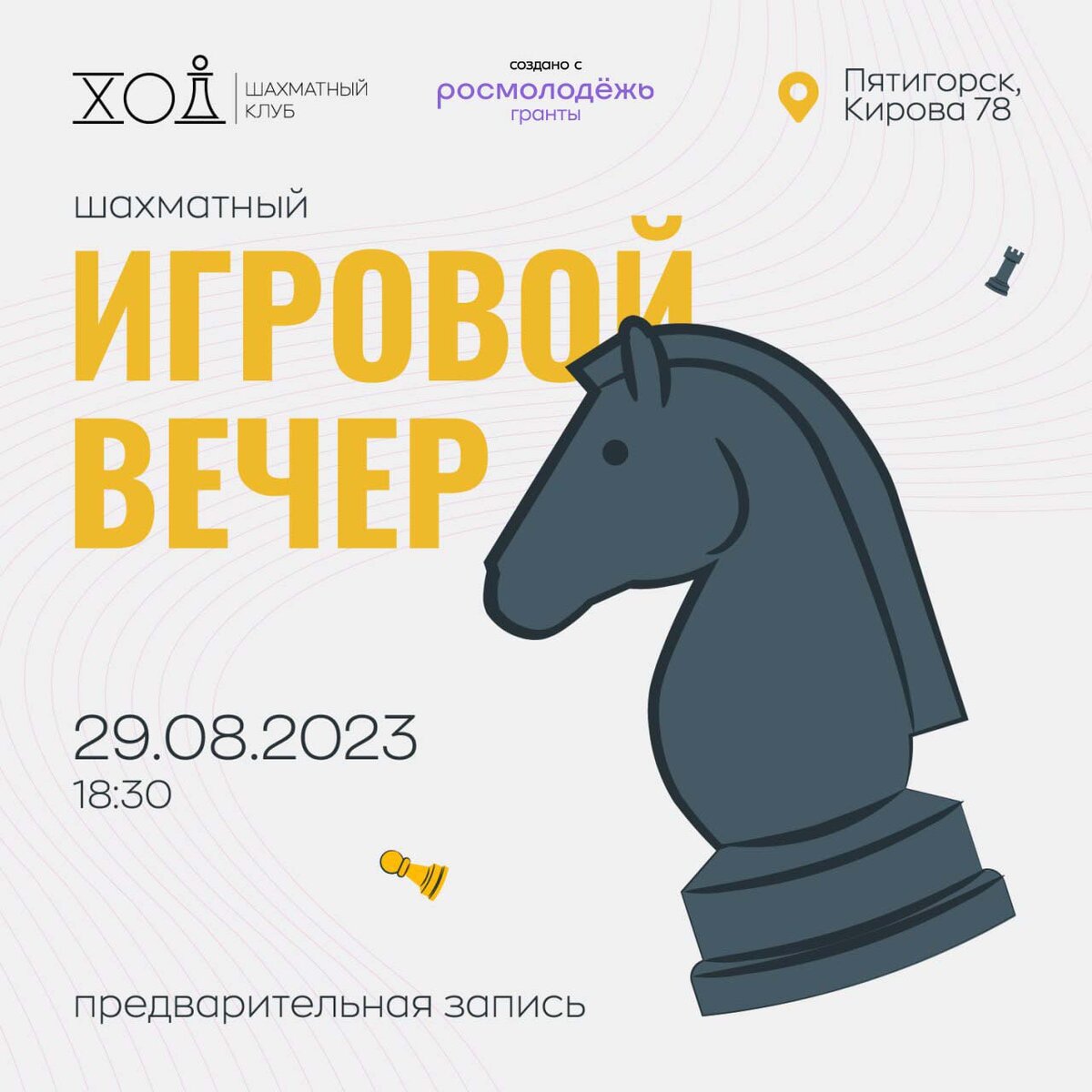 Привет, на связи Шахматный клуб «Ход»! Приглашаем вас посетить игровой вечер, который пройдет сегодня в стенах нашего клуба. Игровой вечер проводится при поддержке Росмолодежь.Гранты Начало в 18:30 Вход свободный! Приходите сами и приводите с собой друзей. Вернем шахматам былую славу вместе! #РосмолодёжьГранты #Росмолодёжь