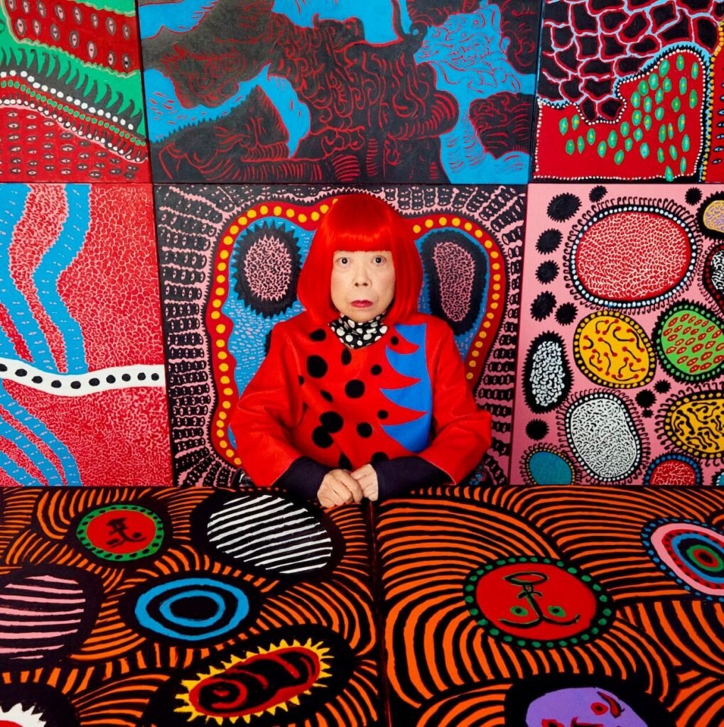 Яёи Кусама — японская художница. Её живопись, коллажи, мягкие скульптуры, перформансы и инсталляции разделяют одержимость повтором, узорами, аккумуляцией. Кусама описывает сама себя как «навязчивую художницу». Она является также писательницей и поэтессой, создала заметные работы в кино и дизайне одежды. Страдает психическими заболеваниями. 12 ноября 2008 на аукционе Кристи её работа была продана за $5 100 000 — это рекорд для живущей художницы! Детство Яёи Кусама родилась в Мацумото, префектура Нагано, страдала галлюцинациями и навязчивыми мыслями с детства, часто суицидального характера. В семье она была четвёртым ребёнком. Властная мать требовала от дочери полного подчинения и часто наказывала ребёнка за малейшее непослушание, в том числе и физическим образом. От таких действий психика девочки сильно пострадала, начались галлюцинации и разнообразные видения, которые чуть было не довели её до cуицидa. Чтобы как-то сгладить беспокойное состояние, психиатр порекомендовал ей регулярно