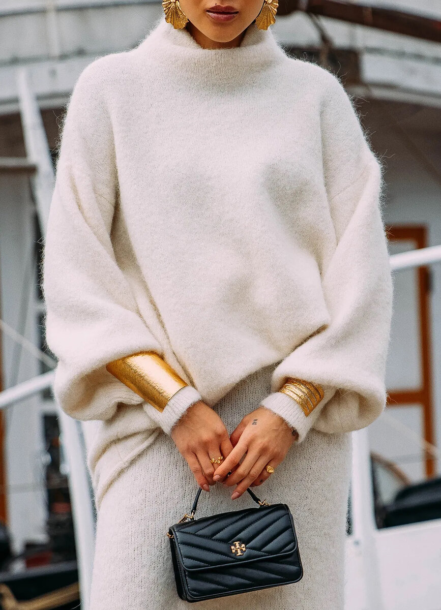 Абсолютно уверена, что лучший способ научиться одеваться - много смотреть, как другие люди сочетают и стилизуют одежду, а затем анализировать, запоминать, и пробовать понравившееся. Именно так развивается насмотренность - недостаточно просто смотреть на красивые фотографии луков, нужно видеть их составляющие, взаимосвязи и контексты. Стритстайл отчеты с fashion weeks из разных точек мира - идеальный материал для такой тренировки. Предлагаю вам посмотреть на приёмчики от фэшн-инфлюэнсеров из Копенгагена. Массивные браслеты поверх свитера Отличный вариант для ношения браслетов в холодное время года. Со свитшотом прием работать не будет - чтобы выглядело круто, материал должен быть фактурным и мягким. Также, можно использовать прием с рубашкой с расстегнутыми манжетами. Расстегнутая рубашка поверх застегнутой рубашки Главное - грамотно сочетайте принты и цвета. (Как это делать можно прочитать в моей довольно старой, но все еще актуальной статье. Про сочетание принтов - в конце.) Еще: Над
