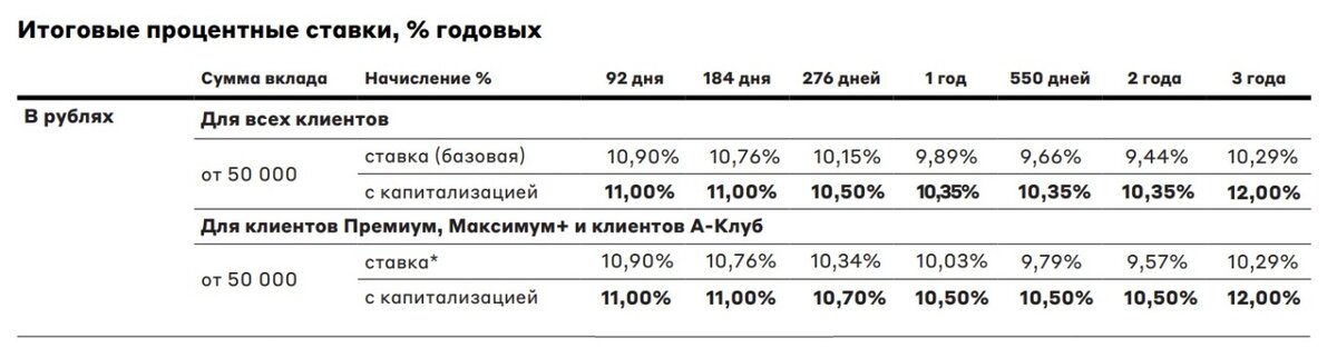- размер вклада – от 50 тысяч до 30 миллионов рублей;