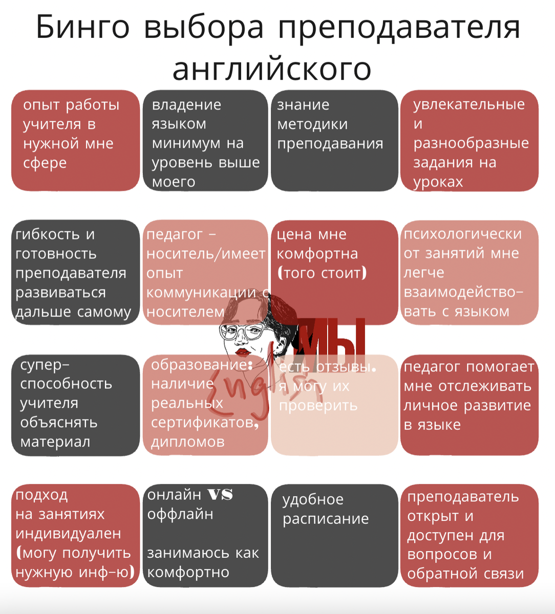 Что мы все делаем, когда хотим что-то выбрать (новый телефон, одежду, спортзал или преподавателя)? 1е - обращаемся к опыту знакомых, просим совет. Здесь запускается сарафанное радио. 2е - ищем расценки, отзывы, обзоры и рекомендации в интернете. 3е - пробуем услугу/ желаемый продукт «на вкус». Если все еще не очень уверены, то в маленьких количествах: есть бесплатный пробник - супер; нет - оплачу пока одно занятие, куплю одну футболку - после посмотрю на качество и решу брать ли еще. Все эти шаги вполне логичны и закономерны, исследование и сравнение вариантов помогает принять информированное решение. Мне бы хотелось обратить внимание на некоторые предрассудки, встречающиеся у многих в ходе поисков своего продавца товара/услуги и мешающих найти наиболее выгодный и подходящий вашим потребностям и ожиданиям вариант. Старушка N - учитель английского со стажем, с ней занимался сын моей подруги, им всё понравилось! Почему подобный отзыв реального человека из окружения дает многим моментал