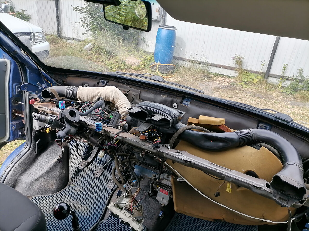 Мой старенький бус потребовал немного внимания. Проблема назревала давно, с момента покупки два года назад лобовое стекло потело, а зимой нещадно обмерзало. Да еще и антифриз потихоньку уходил. Какие могут быть причины? 1. Протекает лобовое стекло 2. Течет радиатор печки 3. Неправильно работают воздушные заслонки И в моей машине все три проблемы имеют место быть. В предверии холодов самое время закрыть вопрос, потому что этой зимой бус будет использоваться чаще. Выделил время на выходных и приступил к ремонту. Разбирается все интуитивно, видишь крепеж - откручиваешь, видишь разъем - отщелкиваешь, машинка то простая. Буквально час - и торпеда снята. Как видно, рамка лобового переживает не лучшие свои времена - коррозия по периметру. Печально, но не смертельно. Откручиваю винты крепления печки, снимаю агрегат целиком. Отдельное спасибо конструкторам за болт, крепящий печку между выпускным коллектором и моторным щитом, жаль что я не осьминожка. Вот я и добрался до цели своего путеше