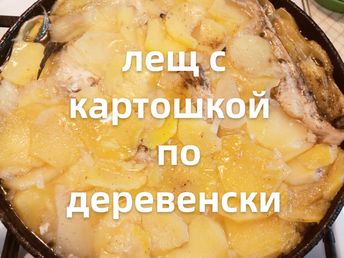 Наконец то я дождалась, когда муж наловит столько лещей, чтобы хватило не только для жарки, вяления, но и для ЭТОГО блюда,....... даже осталось 1,7 кг для консервов (Консервы из леща в духовке). Назвала по деревенски, потому что в детстве всегда это блюдо готовила моя бабушка. Поскольку бабушка делала его в печи и от этого оно получалось томленым, то я приготовила его не на сковороде, а в ДУХОВКЕ. Потребуется: Приготовление: 1. Если лещ свежепойманный, то нужно смыть слизь, снять чешую, выпотрошить, отрезать голову. В этом готовом виде мне досталась рыба. 😊 2. Противень смазать подсолнечным маслом. Разрезать рыбу на порционные куски. Сложить в одну емкость, посолить, перемешать и выложить на противень. 3. Луковицу мелко порезать и, если хотите, можно обжарить. А можно положить сразу на рыбу. Т.к. блюдо будет запекаться около двух часов, то лук почти растворится. 4. Картошку ( у меня свежевыкопанная) порезать на кружочки. Добавить перец горошком, лавровый лист и потом уложить на рыбу