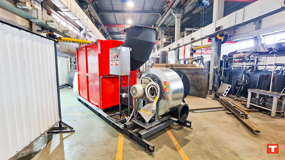При отсутствии свободного помещения под тепловой центр, мы предлагаем своим клиентам оборудование в утеплённом блок-контейнере, однако в некоторых ситуациях, когда размещение теплогенератора планируется на улице, а проект не предусматривает блок-бокс (например при размещении ТГВо под навесом), мы устанавливаем дополнительно защитный кожух на горелочное оборудование, для защиты его от воздействия окружающей среды и погодных явлений. Теплогенератор ТГВо-600 отлично подходит для обогрева производственных помещений, промышленных объектов и участия в технологических процессах сушки. ТГВо подает нагретый воздух с температурой не более +120 °С под давлением до 2000 Па. Установка использует непрямой нагрев, при котором тепло от дымовых газов передается воздуху через стенку топки и трубы теплообменника. Теплогенератор состоит из горелки итальянского производства (Baltur или F.B.R.), вентилятора среднего давления, топки, теплообменника, алюминиевой заслонки, щита управления и автоматики. Тепло