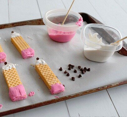 Как сделать своими руками Вафли в виде карандашей? Легко и просто. Такими вафлями можно порадовать деток на 1-е сентября. Нам понадобятся вафли, кусочки шоколада (можно, использовать изюм, если ваши дети его любят), и глазурь разных цветов. Приготовление этих вафель-карандашей занимает несколько минут, и они понравятся вашим детям.