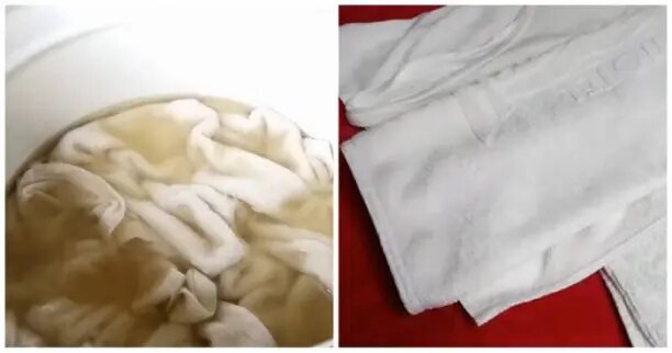 2 ст. л. соли. В раствор окуните пожелтевшие вещи, поставьте на плиту. Доведите до кипения, прокипятите 5 минут, выключите. Оставьте вещи остывать прямо в растворе. Вода помутнеет и пожелтеет. Прополощите вещи и постирайте в машинке, как обычно. Они будут идеально белыми!