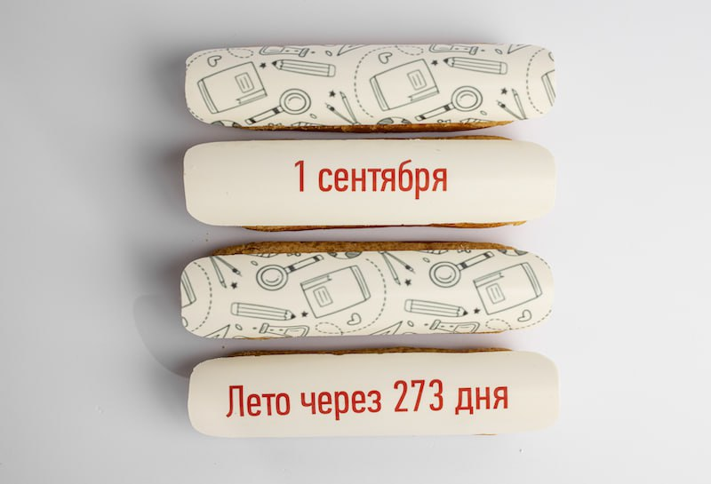 До нового учебного года остались считанные дни, так что если у вас дома обитает школьник, то не исключено, что после каникул в День знаний ему может потребоваться дополнительная сладкая поддержка. Например, в виде эклеров из белого шоколада с оптимистичными надписями вроде «Лето через 273 дня». Или миниатюрный муссовый бенто-торт с успокаивающим напутствием «Без паники, это всего лишь 1 сентября», который можно разделить в это день с одноклассниками. Выпуск таких интересных десертов к первому сентября наладили в кондитерской «Любовь и Сладости» Регины Бурд и Сергея Жукова. На выбор родителям предлагаются тортики с тремя различными вариантами начинки: малиновый, крем-чиз, манго-маракуйя с шоколадом. Делая заказ в онлайн-магазине кондитерской, сладости можно снабдить оригинальными надписями и пожеланиями к началу учебного года. Уже готовые «мотивирующие» эклеры продаются набором или поштучно в корнерах на Даниловском рынке, Vegas Crocus City и фуд-молле ДЕПО. 📌Подписывайтесь на наш кана