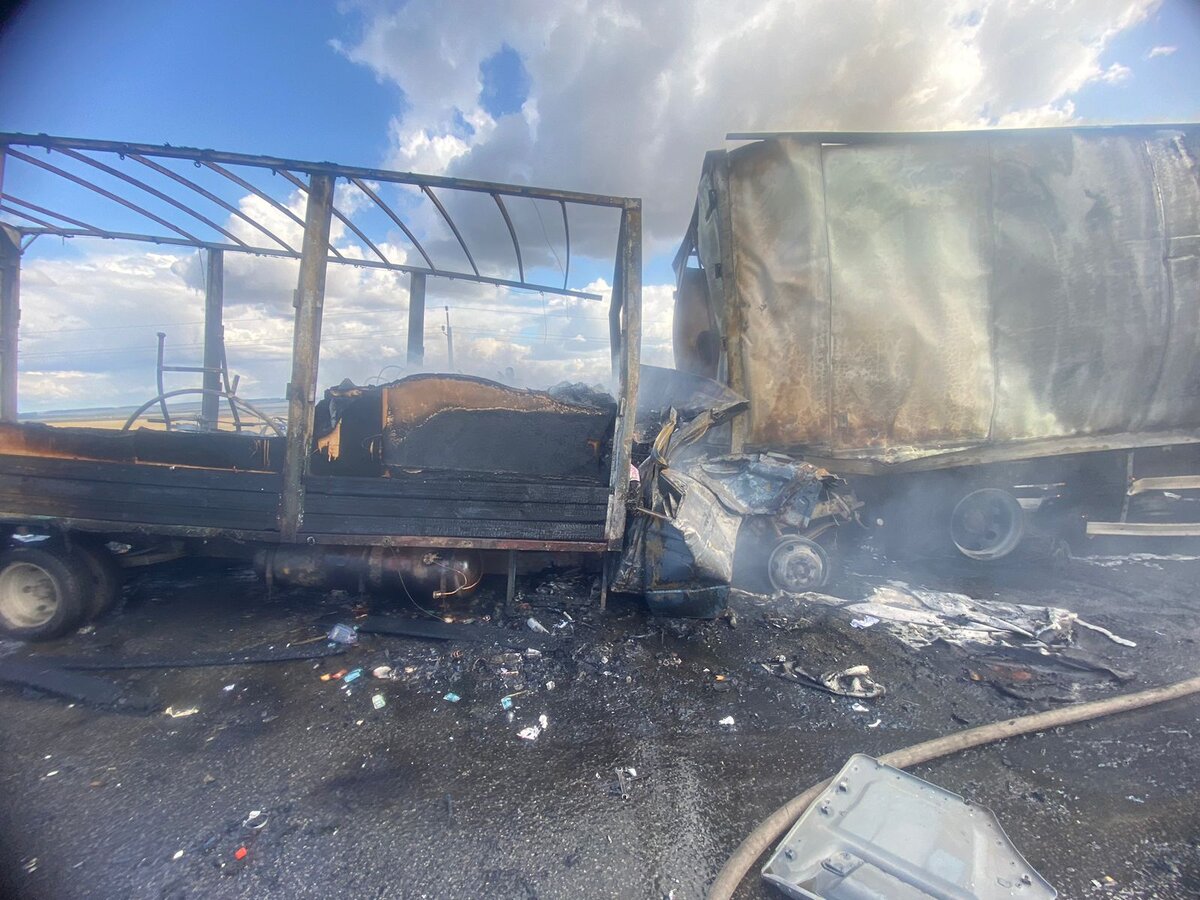 Страшная авария произошла в Менделеевском районе. Водитель "Газели" не выбрал безопасную дистанцию и врезался в грузовик Isuzu.В результате автомобиль загорелся, от машины практически ничего не осталось.
