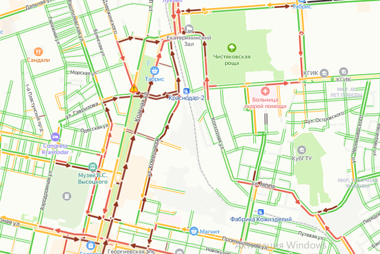 К 29 августа заторы к морю заметно уменьшились, но зато в Краснодаре вновь зафиксированы 7-балльные пробки, которых не было практически все лето. Рассказываем, на каких участков города движение наиболее затруднено. Согласно данным сервиса «Яндекс. Пробки», пик заторов сегодня в Краснодаре придется на 18:00 и 19:00. Буквально стоит улица Красная – начиная от Буденного и до Офицерской. Далее затор продолжается на протяжении более полукилометра по Ростовскому шоссе. Пробка в обе стороны наблюдается и на улице Гаврилова – на участке между автостанцией и улицей Рашпилевской. Почти 2-километровый затор и на улице Коммунаров – от Крестьянского переулка до Офицерской. Пробки на Красно и Гаврилова Затор протяженностью более 2,5 километров и на Тургеневском шоссе – из Новой Адыгеи до улицы Северной. Серьезно затруднено движение также на Западном обходе. Начиная от кольцевого перекрестка у ЖК «Светлоград», пробка растянулась почти на 3 километра. На ее преодоление потребуется около 25 минут. Запа
