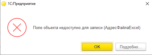 Ошибка во внешней обработке 1С "Поле объекта недоступно для записи"