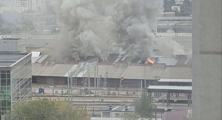 Складские помещения загорелись на Комсомольской площади в Москве