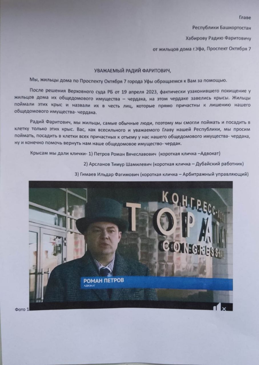 Жильцы дома номер 7 по Проспекту Октября в Уфе принесли в приемную Главы Республики Башкортостан ... крыс В своем обращении жители попросили Радия Хабирова "поймать, посадить в клетки всех причастных к отъему у нас нашего общедомового имущества - чердака, ну и конечно помочь вернуть нам наше общедомовое имущество"