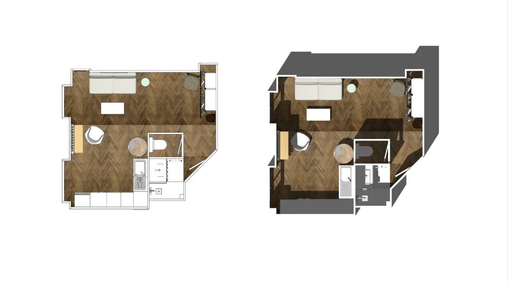 Жизнь в маленькой квартире заставляет своих владельцев находить порой неожиданные решения в обустройстве жилья. Согласитесь, придумать как организовать систему хранения, кухню или спальное место куда проще, когда у тебя «двушка» или целый дом. А вот если вся твоя квартира – это одна комната среднестатистического коттеджа, то возникают серьёзные проблемы, решить которые порой бывает крайне сложно. Сегодня мы рассмотрим интерьер небольшой студии с общей площадью всего 24м², которая особо не отличается своим интерьером, но в ней есть всё для комфортной жизни. Жилец данной квартиры – молодой студент факультета дизайна интерьера и сценографии, который заканчивает учёбу в этом году и, соответственно, кое-что понимает в оформлении пространства. Юноша снимает эту квартиру, расположенную на юге Франции в Париже, уже пару лет, поэтому к нему сформировалось некое доверие со стороны владельца. На свой страх и риск он позволил Николя обустроить пространство так, как он сам захочет. Вопрос только од
