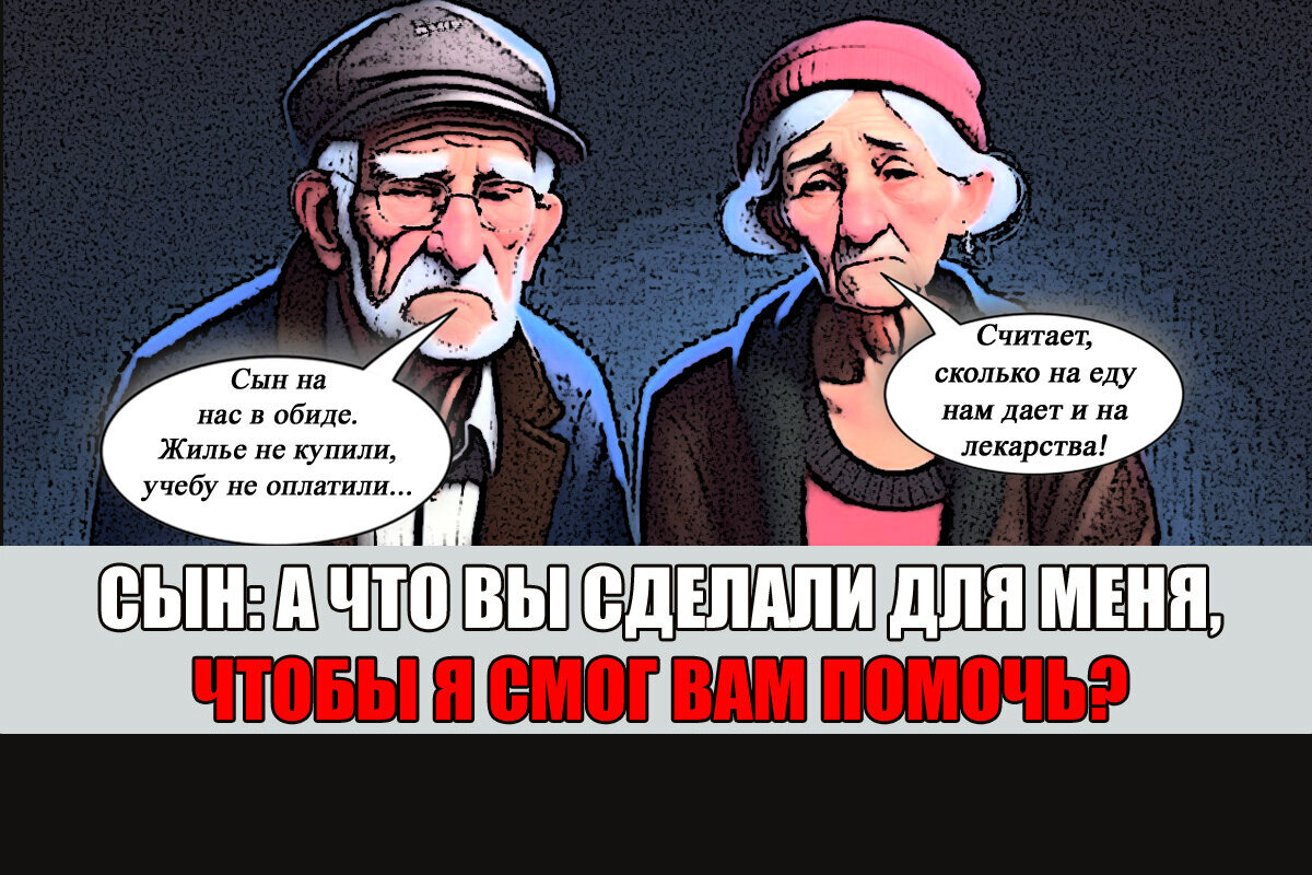 Комментарий матери: Сынок, негоже отказываться от помощи родителям! Ведь всем что у тебя есть, ты обязан нам, можно же пойти на уступки? Это же твоя святая обязанность!