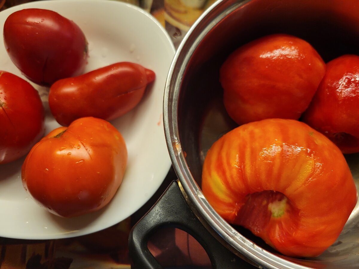 Пусть и веет от заголовка кликбейтом, но это – чистая правда и ничего кроме правды! А дело было так. Сделала я как-то турецкий томатный суп. Как бы их, с туретчины, хФирменное блюдо. И получилось... ах, как получилось! Ребёнок мне так прям и заявил: "Мама, я терпеть ненавижу супы, но этот готов есть каждый день"! И мне тоже ооочень понравилось. Хотя супы я люблю. Но не все. А только вкусные. Самое приятное, что делается он элементарно! Несколько мясистых помидоров надрезаю на "попках" и опускаю в кипящую воду секунд на 10. После чего они из шкурки своей буквально с разбегу выпрыгивают. Вырезаю "попки"и прокручиваю "мяско" в блендере до состояния пюре. Можно и через сито... но это уже, если честно, мазохизмом попахивает. Себя, в конце концов, любить надо. Хотя б иногда. В кастрюльке с двойным дном в трёх ложках оливкового масла обжариваю три-четыре ложки муки. Туда же плюхаю помидорную массу, перемешиваю и чуток водой разбавляю, если томаты слишком уж "мясные". Довожу до кипения... к