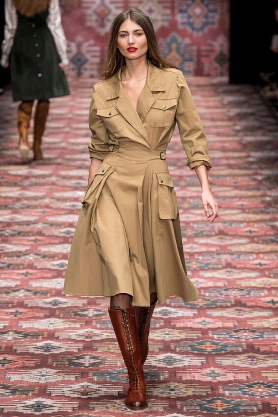 Прохладная осенняя погода не исключают ношения платьев. В осеннюю слякоть самые модные из них сочетаем с теплыми пальто, кожаными куртками и высокими сапогами.