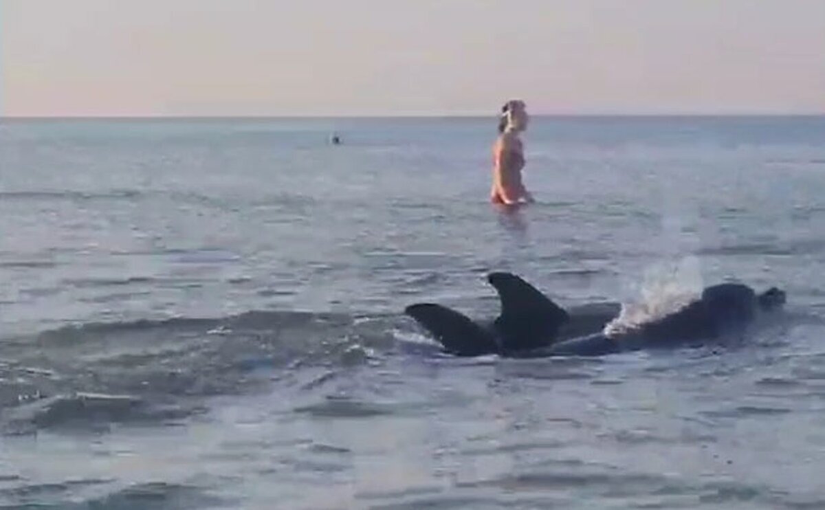 В Анапе пара дельфинов приплыла на мелководье к людям: тулячка сняла милое видео