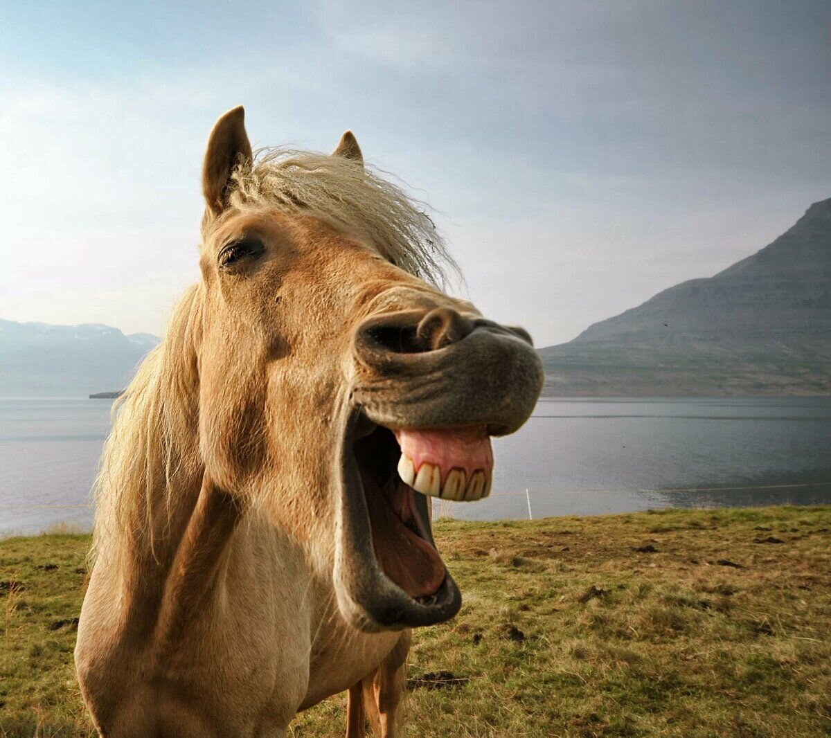 Так получилось, что для обложки еженедельника и статьи срочно нужен был снимок смеющейся лошади, то есть открытый рот, зубы жёлтые в ряд и типа ухмылка кобылы, всё нижним ракурсом, ну так редактор определил. Послали меня. Для этого не пожалели редакционный газик на ближайшую частную конеферму, где содержат грациозных животных, катающих в парках детей. Но там съёмки не получилось, никто из коняк улыбаться не хотел, ни за сахар, ни за сухарик. Серьёзные копытные, лягались, не забалуешь. Сотрудник фермы посоветовал проехать чуть дальше до села, где живёт один мужик, конюх. Сено им привозит для денников. У него кобыла старая, дрессированная, там точно фото получится. Поехали. Да нет проблем, говорит конюх, - она любит улыбаться, нужна только водка. Одна бутылка мне за работу, другая моей кобыле. Поехали, купили. Думаете, что он разбавлял водку водой в ведре? Агааа... Проехали, точнее проскакали. Конюх показал лошади бутылку, та сразу стала «улыбаться», даже не глядя на этикетку и адрес изг