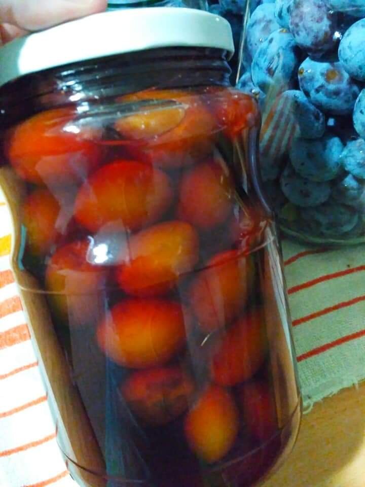Вкусная, сил нет! Рецепт - Главное здесь - маринад. Сливу, лучше сорт « венгерка », плотную, чуть недоспелую, вымыть, наколоть вилкой и уложить в банки. Банки заполнять почти до краёв. В банки, вместе со сливами, положить лавровый лист. На литровую банку - пару листиков. Теперь процесс - сливу залить кипящим маринадом и прикрыть крышкой. Дать остыть. Слить маринад в кастрюльку, закипятить и снова залить сливу. Сделать три заливки ( три раза залить сливы кипящим маринадом и дать остыть). Оставить на ночь. Утром маринад слить, закипятить, залить сливы и закрыть крышкой. Убрать на хранение. Маринад ( сразу говорю - ошибок нет) на один литр воды. 700 гр сахара Семь гвоздичек Семь горошин душистого перца Пол чайной ложки молотого имбиря Пол чайной ложки корицы Пол чайной ложки мускатного ореха 70 - 100 мл коньяка ( по желанию, можно не добавлять) 3/4 стакана уксуса 9 %. Воду закипятить, добавить сахар, и немного уварить, помешивая, на среднем огне, минут 10. Добавить специи, коньяк