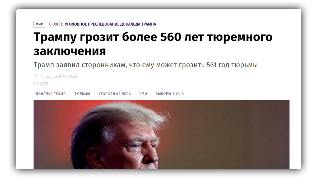 Привет, друзья. Наверное все уже слышали о том, что бывшему президенту США Дональду Трампу грозит реальный тюремный срок. Причём пожизненный.