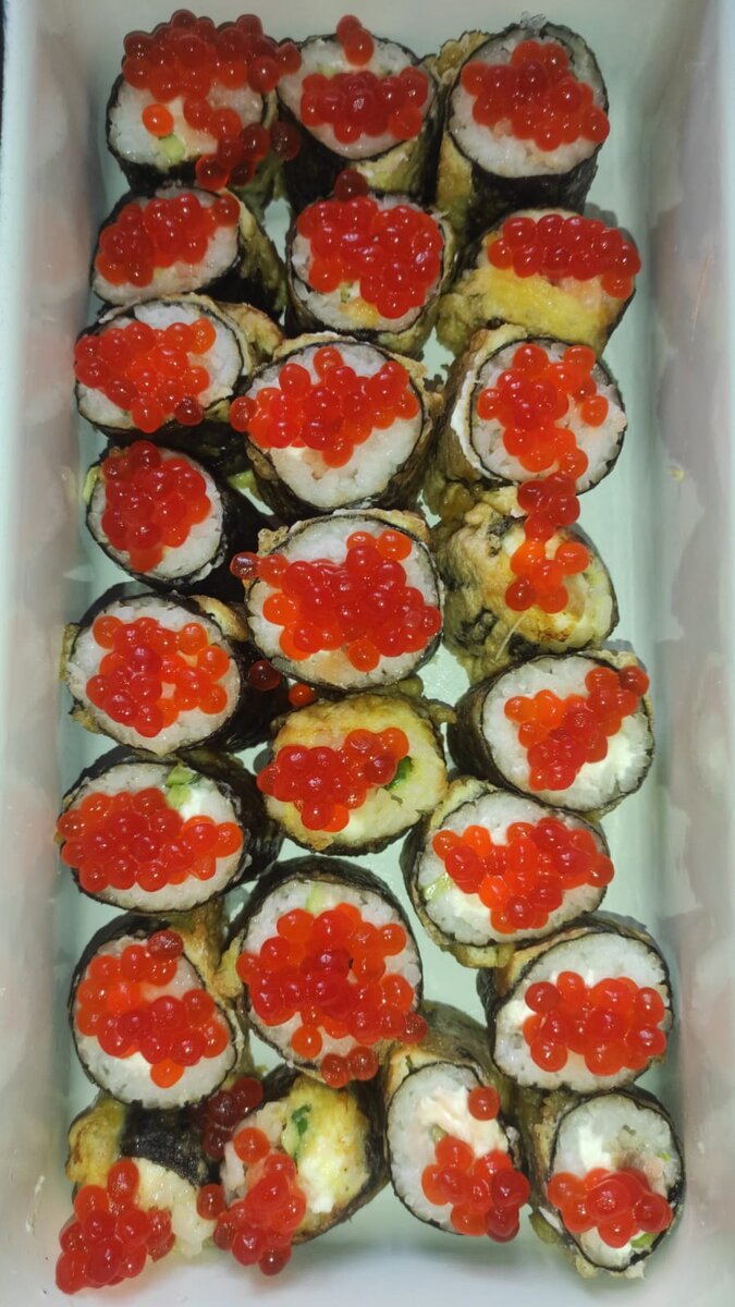 Здравствуйте🥰 Вчера на ужин готовила роллы. Делюсь с вами рецептиком😊 Для ролл берём круглый рис ,очень тщательно промываем ,до 10 раз, заливаем водой 1:1 или 1:1,5 и варим до готовности. Он должен быть невлажным. 👌Готовим заправку для риса: горячая вода ( 2стол.л) + рисовый уксус ( 2 стол.л) + сахар(2 стол л) + соль( 0,5 чайн.л), тщательно перемешать, аккуратно ввести и перемешать рис. Готовим начинку: режем огурчики ,авокадо, рыбу или креветки, крабовые палочки . Остынет рис и можно приступать. 😎Беру циновку ,одеваю на нее пакет, лист нори гладкой стороной вниз, рельефной вверх. Раскладываю рис ложкой, выравниваю рукой(смачивая её холодной водой) Раскладываю начинку, сыр творожный и сворачиваю рулеты покрепче. Как остынут полностью, можно разрезать острым ножом , периодически смачивая холодной водой. Или в кляр и обжарить по 1,5 мин. со всех сторон и выложить на бумажные полотенца. Потом нарезать. Украшаем сверху кунжутом , икрой... Готовлю сыну горячие роллы ,