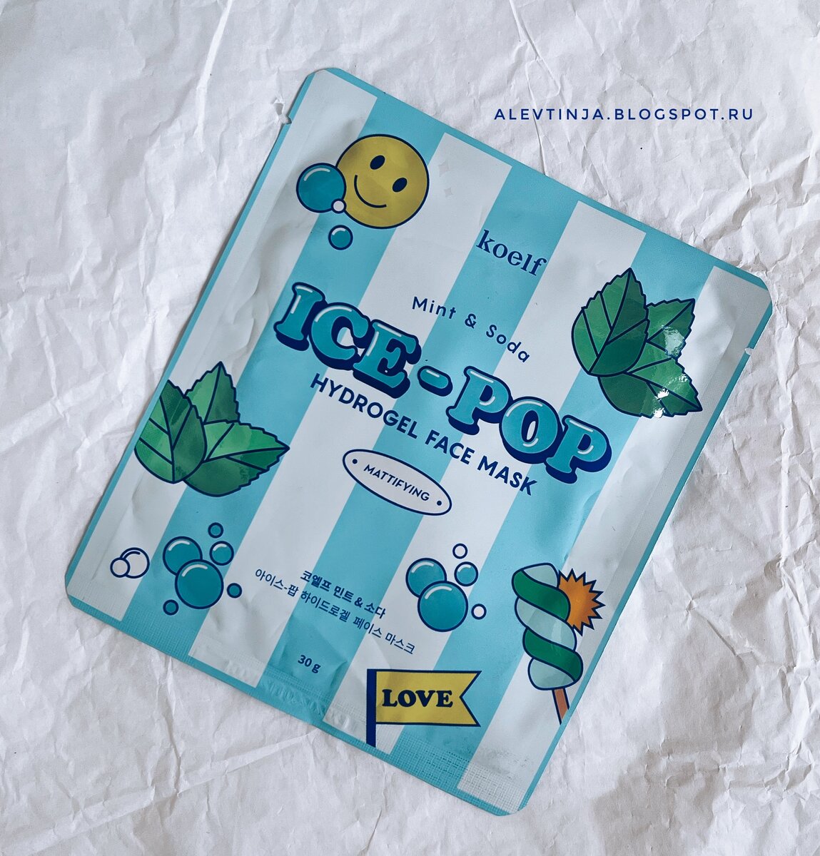 Всем привет! Смотрите, какая интересная маска - с газировкой и мятой! Как-будто специально создана для лета. Заказать можно: на iHerb со скидкой 10% - Koelf, Гидрогелевая маска для лица Ice-Pop, с мятой и содовой, 5 шт., 30 г - на Яндекс Маркете Гидрогелевые маски - это как патчи под глаза, только на всё лицо. Кстати, у бренда в линейке Ice-Pop есть и патчи под глаза. В планах попробовать их тоже. Но вернёмся к нашей маске. Прежде всего, она подойдет для обладательниц жирной и комбинированной кожи. Но летом, когда излишняя выработка себума может быть у кого угодно (ну кроме самой сухой кожи), маска пригодится всем. Что работает в составе? Это и обладающий тонизирующим, улучшающим кровообращение и укрепляющий стенки капилляров экстракт мяты; это и препятствующее потере влаги масло ши; и обладающие антимикробным действием цинк и порошок ирландского мха; и очищающий бикарбонат натрия, та самая газировка. Гидрогель, из которого выполнена маска, очень прикольный, в бело-голубую полос