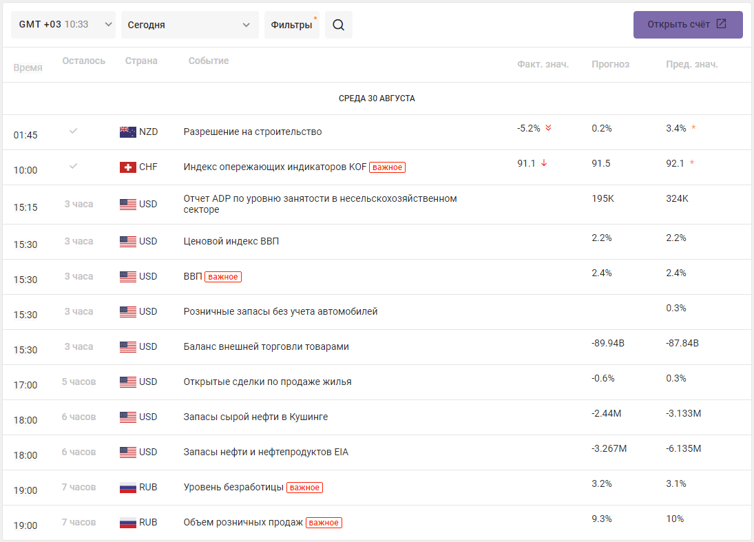 В начале среды доллар США удерживает свои позиции после значительных потерь против своих конкурентов во вторник. Европейская комиссия опубликует данные о настроениях в деловых кругах и среди потребителей в еврозоне. Позже участники рынка будут пристально следить за данными по индексу потребительских цен (CPI) в Германии. В США выйдут августовские данные по занятости ADP, сальдо торгового баланса за июль и данные по валовому внутреннему продукту (ВВП) за второй квартал. Во вторник индекс доллара США развернулся в южном направлении и потерял 0,5% после того, как Бюро статистики труда США сообщило, что число вакансий в последний рабочий день июля сократилось до 8,82 млн. с 9,16 млн. (пересмотрено с 9,58 млн.) в июне. Доходность 10-летних казначейских облигаций США снизилась более чем на 2% после выхода этого сообщения и оказала дополнительное влияние на доллар США. В первой половине дня в Европе в среду индекс доллара США держится за небольшой дневной прирост чуть выше 103,50, а доходност