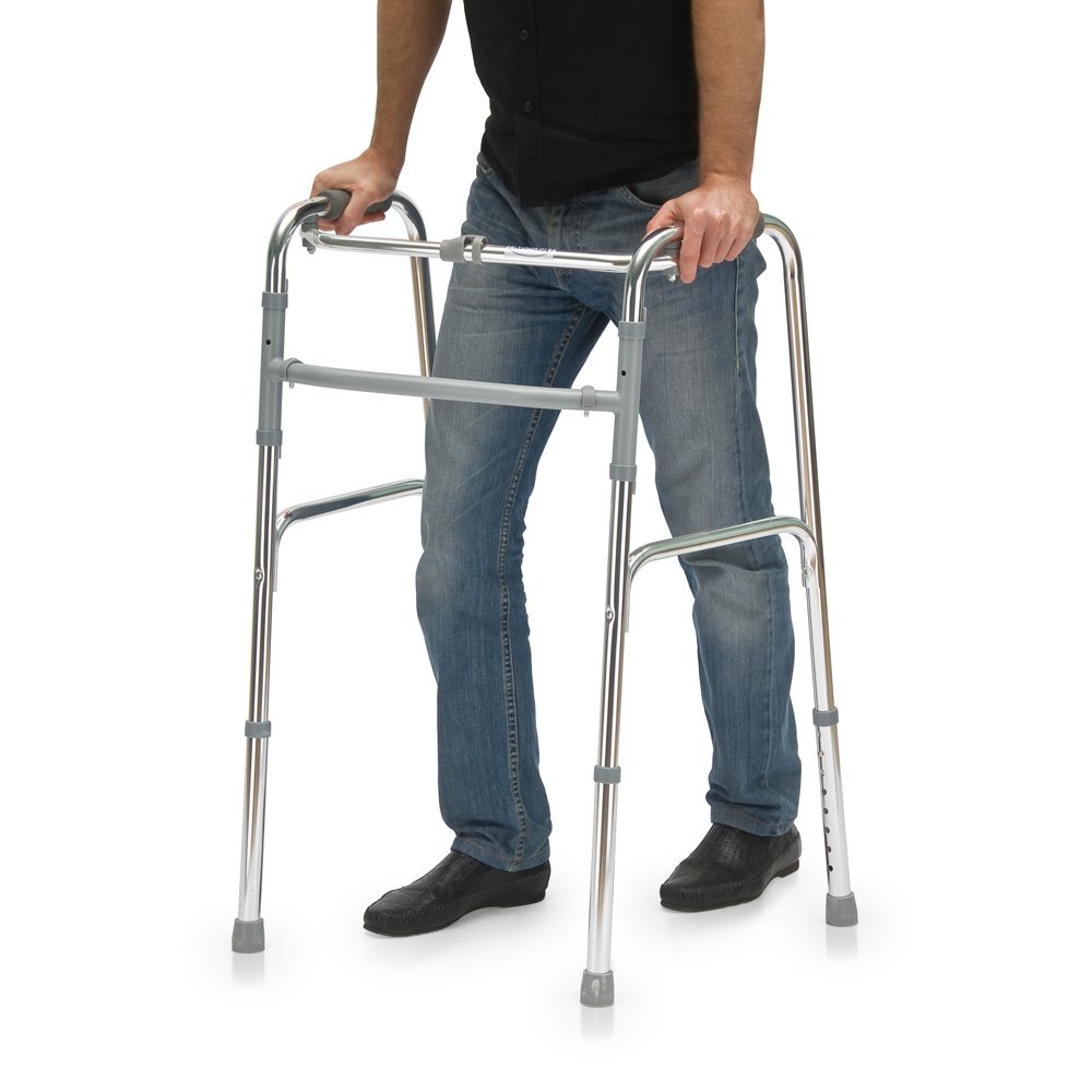 Шагающие ходунки позволяют делать шаги, переставляя попеременно каждую сторону ходунков вперед. Наиболее устойчивые и дешевые ходунки. Подойдут людям, которым нужна основательная опора и возможность перенести вес тела на ходунки. Практически все модели - складные, благодаря чему их легко и удобно транспортировать и хранить, не занимая много места. Ходунки могут быть оснащены регулировкой высоты - выбирать вам, нужна ли такая опция или нет. В целом, достаточно подобрать нерегулируемые по высоте ходунки с комфортным уровнем высоты.