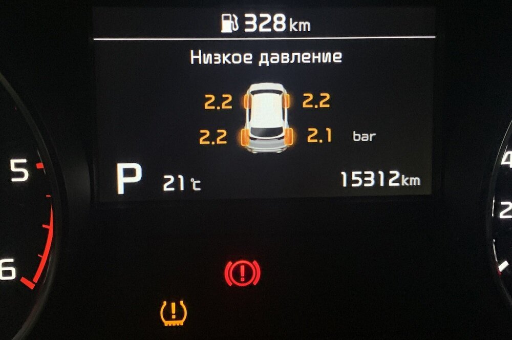 Система контроля давления в шинах помогает повысить безопасность на дороге. Она предупреждает водителя о спущенных колесах, которые ухудшают управляемость автомобиля. Контрольная лампа загорается при падении уровня воздуха ниже нормы, значительной разнице показаний между колесами, неисправности компонентов. Советуем своевременно реагировать на сигналы.
