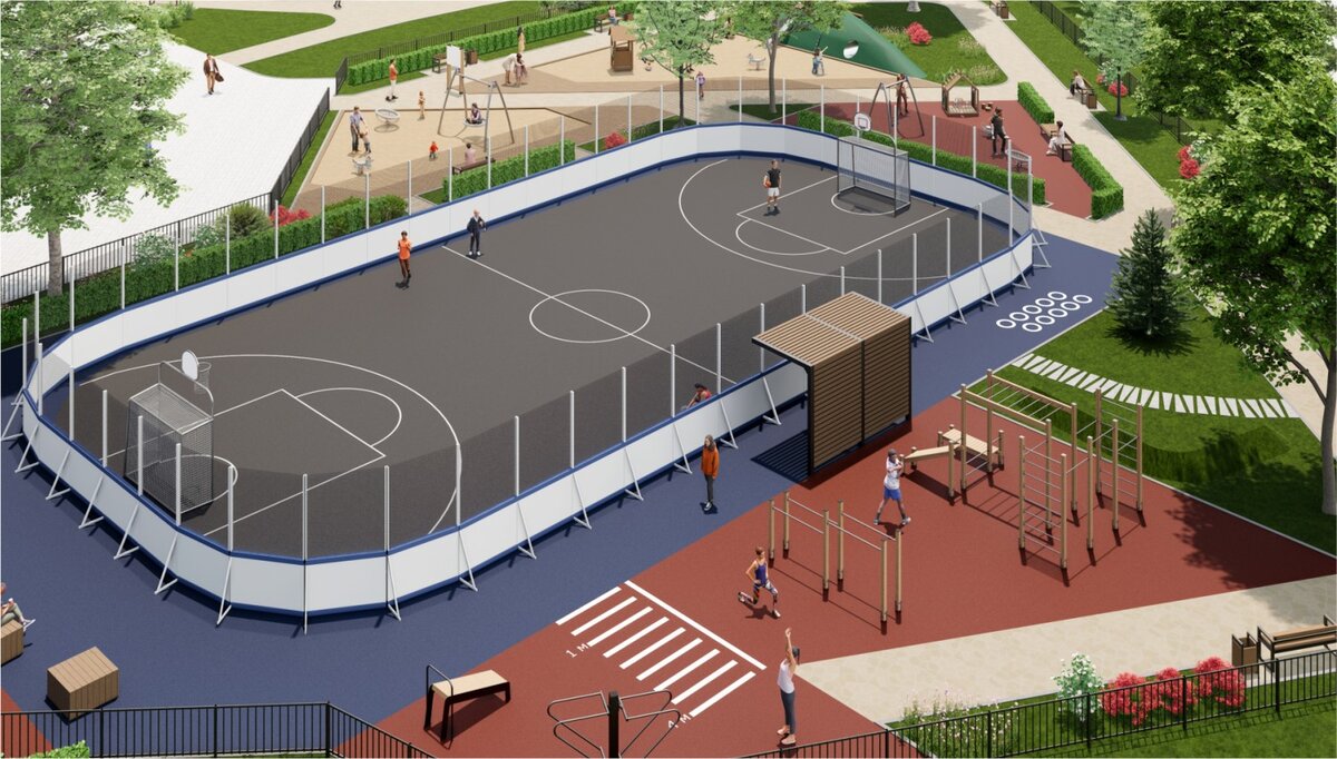 Зимой он будет превращаться в каток. Отличная новость для будущих жителей перспективного жилого квартала «Зеленый остров». На его территории, возле первого дома, расположится современный спортивный корт с монолитным резиновым покрытием. Летом жители смогут там заниматься йогой, танцевать зумбу, играть в гандбол или баскетбол, а зимой — кататься на коньках или играть в хоккей. На корте предусмотрено освещение для занятий в темное время суток. Рядом с площадкой будут сделаны деревянный навес и трибуны. Напомним, что первая новостройка «Зеленого острова» будет сдана точно в срок, уже в 3-м квартале этого года. Приобрести в ней жилье с чистовой отделкой под ключ можно от 2,7 млн рублей.