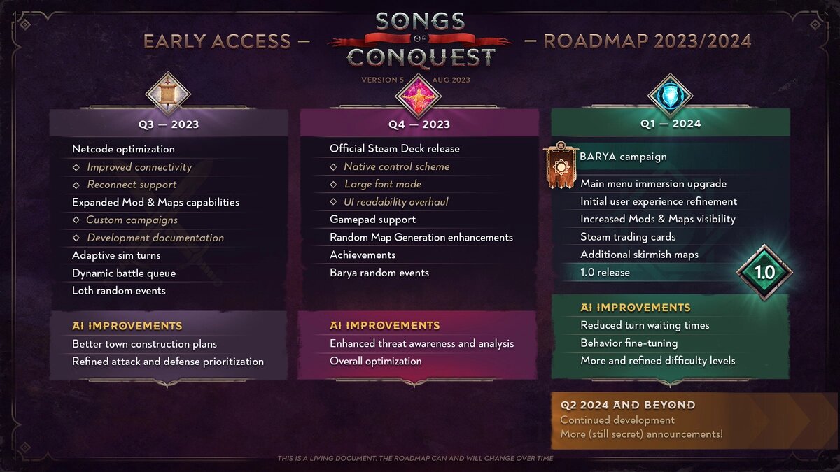 Разработчики стратегической игры Songs of Conquest в духе третьих “Героев” из студии Lavapotion обновили дорожную карту поддержки игры, а также сообщили, что в этом году их продукт не покинет статус раннего доступа несмотря на более ранние заявления. “Жанр приключенческих стратегий больше не является самым большим, но вы продемонстрировали, что спрос сохраняется. Но проще говоря: если игра не готова к версии 1.0, мы должны признать это и продолжать разработку. Итак, давайте ознакомимся с новой дорожной картой, предстоящими изменениями и их причинами”. К релизу разработчики планируют улучшить работу ИИ, разнообразить рандомную генерацию карт, релиз на Steam Deck и многое другое. Стоит отметить, что в Steam онлайн игры давно упал до 300 человек за сутки в среднем. Сейчас Songs of Conquest можно купить по скидке в 50%.