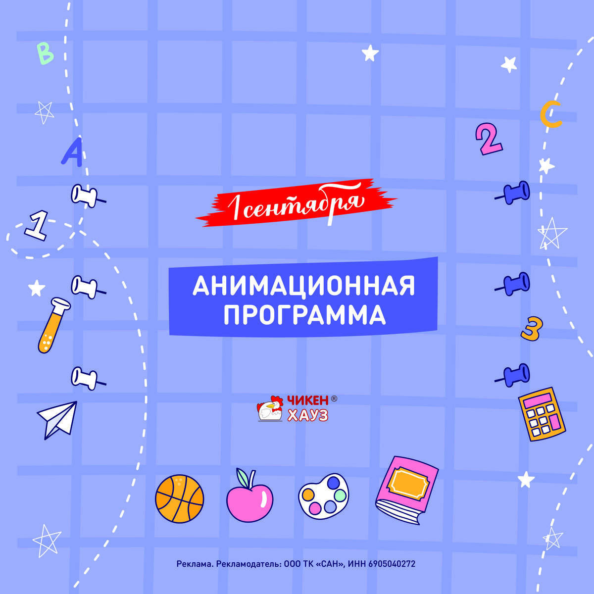 Начинается учебный год. А кто-то сегодня впервые переступит порог школы, колледжа или университета. Чикен Хауз™ поздравляет всех учеников и студентов с праздником! Желаем отличных отметок, увлекательных заданий и незабываемых моментов! Чикен Хауз™ по случаю праздника проведет увлекательные программы для всей семьи. Просто выберите филиал, удобный к посещению, и сохраните расписание. Тверская область Свердловская область