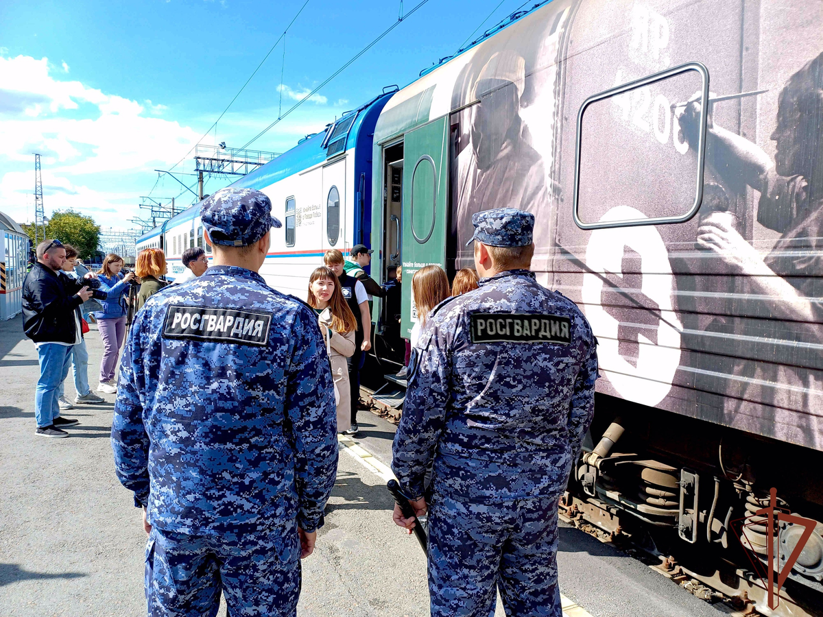 Сотрудники вневедомственной охраны и ОМОН «Скиф» Управления Росгвардии по Курганской области во взаимодействии с коллегами из линейного отдела полиции на транспорте приняли участие в охране общественного порядка и обеспечении общественной безопасности «Поезда Победы», который в течение девяти дней посетило свыше 15 тысяч жителей и гостей региона.