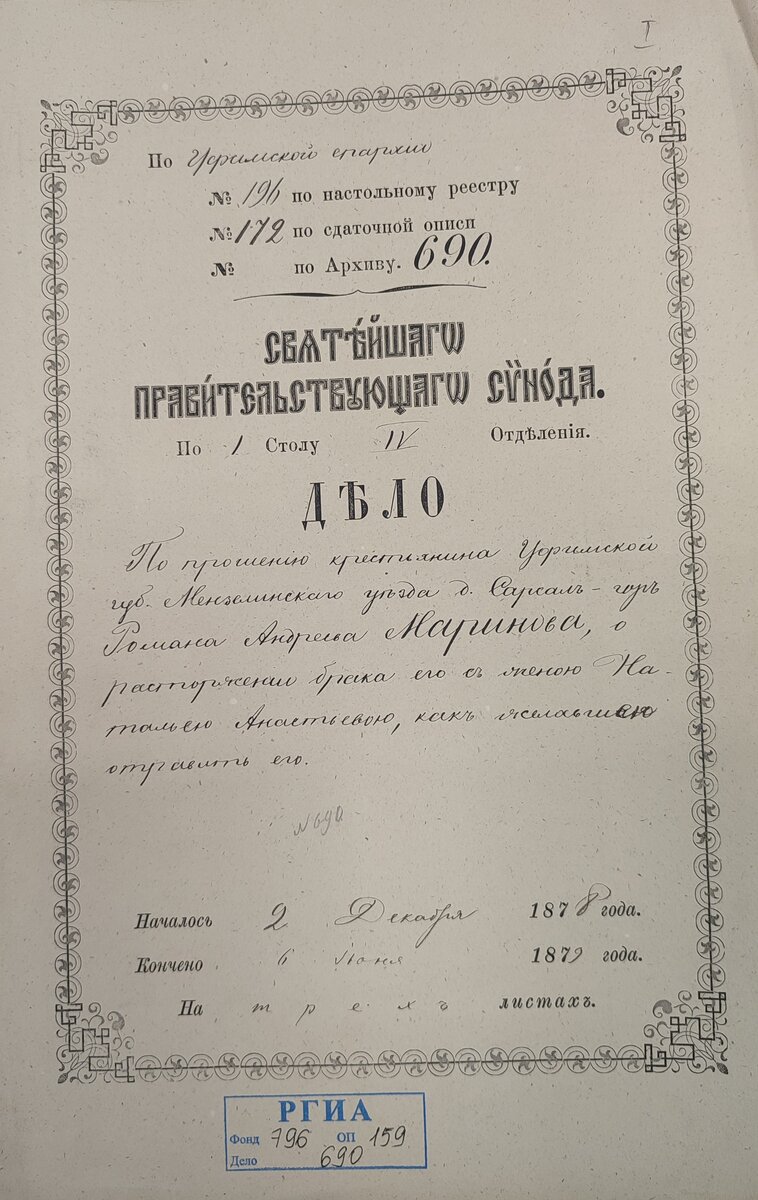 Короткий ответ есть прямо на обложке дела, хранящегося в архиве Канцелярии Святейшего Синода: