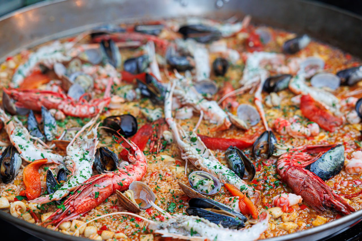 Готовим большую паэлью с рыбой, морепродуктами и мясом