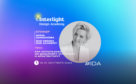 ⚡️Один из хедлайнеров Interlight Design Academy 2023 – Анна Симонова. 💫Анна - дизайнер интерьера, основатель RAD ACADEMY - ТОП 3 крупнейших школ в России (рейтинг РБК), руководитель студии RAD DESIGN; член Ассоциации Спикеров CISSA Радислава Гандапаса; профессиональный спикер GSF (Global Speakers Federation). @rad_world 🔝На Interlight Design Academy Анна расскажет, как применять ИИ дизайнеру и архитектору в своей работе. Обсудим: 🔹 Заменит ли ИИ дизайнеров и архитекторов? 🔹 Что умеет ИИ уже сейчас? Кейсы использования 🔹 Как заставить ИИ помогать в работе и экономить ваше время? 🔹 Как применять ИИ и на каких платформах можно работать? 📌 До встречи 18-20 сентября на Interlight Design Academy! Вход – по билету на выставку Interlight Russia | Intelligent building Russia. Получить бесплатный билет можно по промокоду IL23-OH5IS