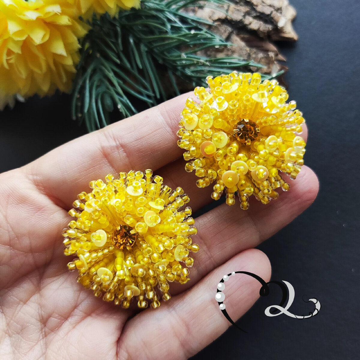 Брызнули солнца слепящие зайчики И засветились в траве одуванчики. Россыпи первых цветов на опушке, Как на носу у девчонок веснушки... О. Борисова Для изготовления серёжек понадобятся: ▪️ фетр жесткий желтый толщиной 1 мм, ▪️ бисер чешский № 10 (желтых оттенков), ▪️ стеклярус 6 мм желтый, ▪️ стразы желтые 6 мм - 2 шт, ▪️ пайетки 4 мм жёлтые, ▪️ застежки для серёжек - 2 шт, ▪️ нитки капроновые №50, ▪️ клей "Момент-Кристалл", ▪️ картон, ▪️ кожа для изнанки Размер 3,5 см Этапы создания Ссылки на материалы: